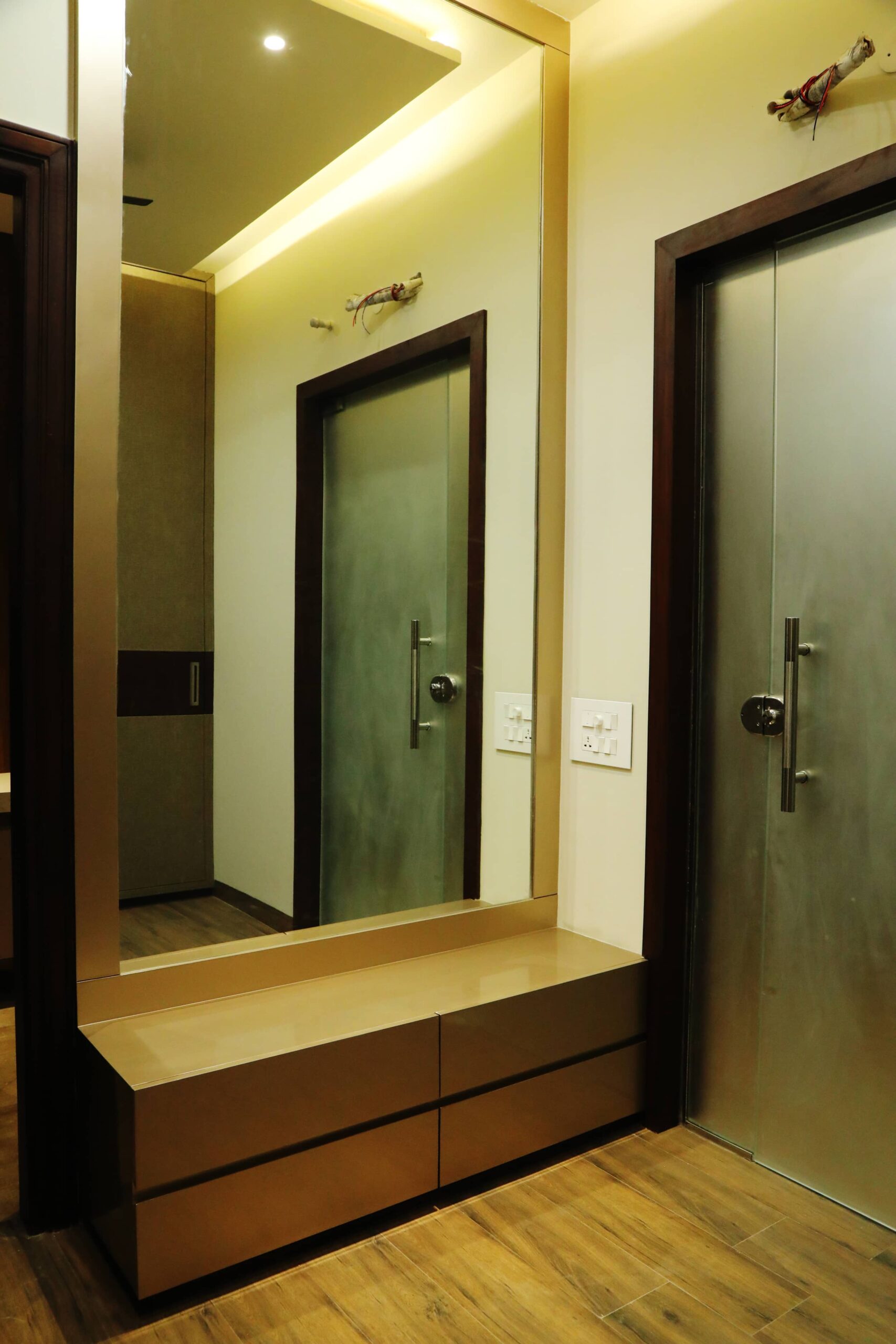 This project was made to sale so the design was kept to engage maximum people. So keeping that in mind whole layout and designs were made to bring out the maximum positivity and calmness in to the minds of people. the neutral color palette was kept so as to have a elegance and luxury into the spaces. All spaces were according to Vastu Shastra and the bedrooms were kept spacious and naturally ventilated. The whole framework was made with high quality materials so that the prospective clients does not face any problems in the future.